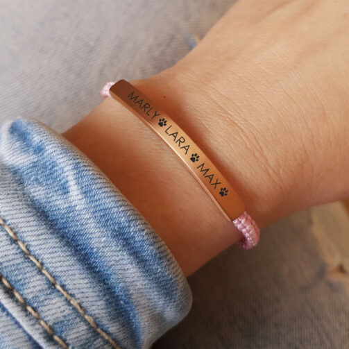 Ružový náramok so šnúrkou – personalizovaný šperk s vlastným textom
