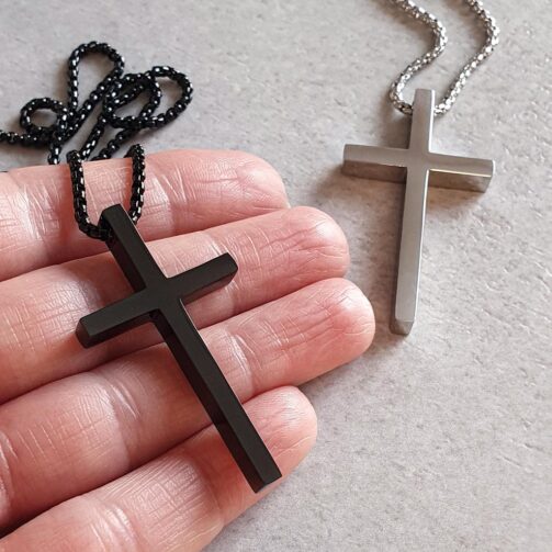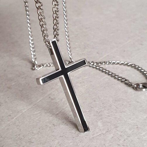 Pánsky náhrdelník KRÍŽ – chirurgická oceľ & čierny smalt – personalizovaný