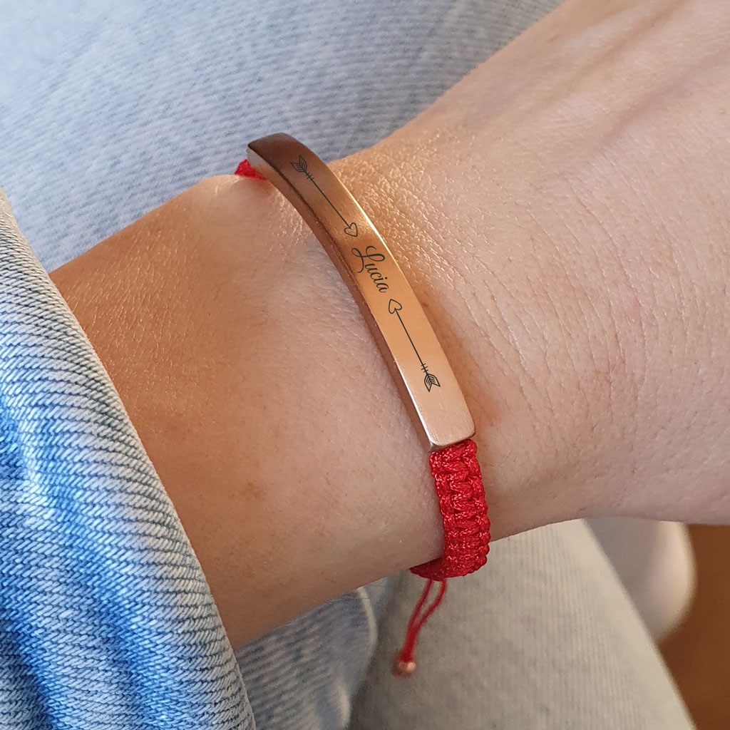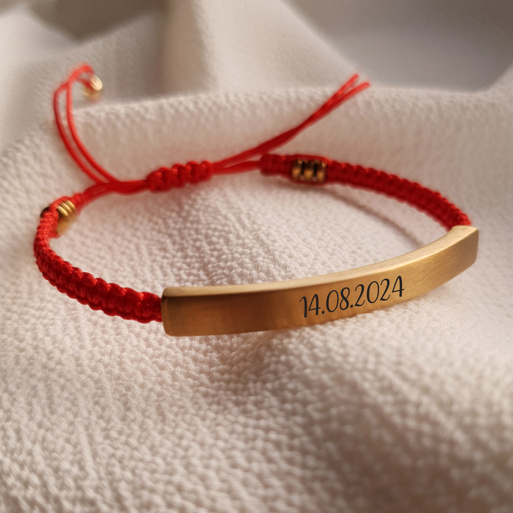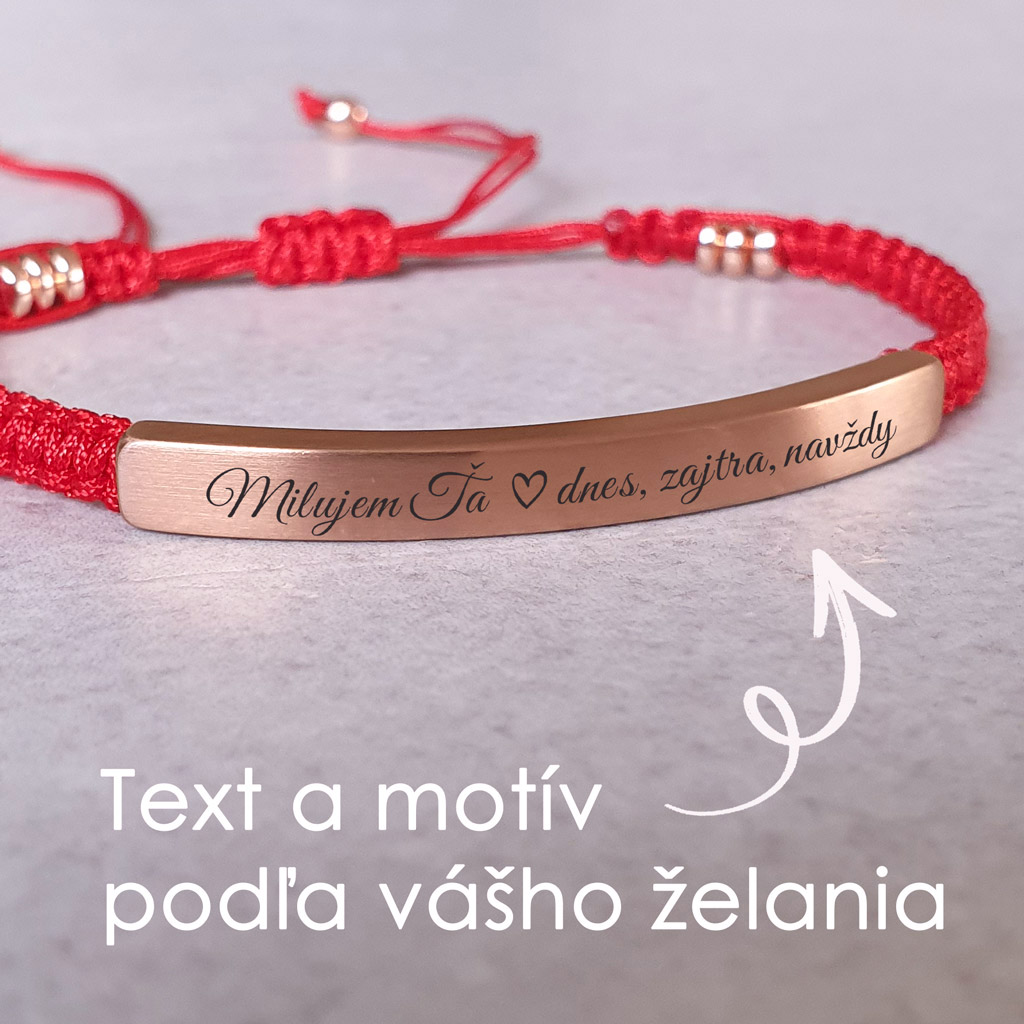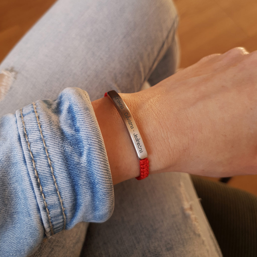 Elegantný personalizovaný náramok so šnúrkou z kvalitnej chirurgickej ocele s možnosťou gravírovania vlastného textu, mena, dátumu alebo symbolu. Ideálny darček s osobným významom – pre ňu aj pre neho .