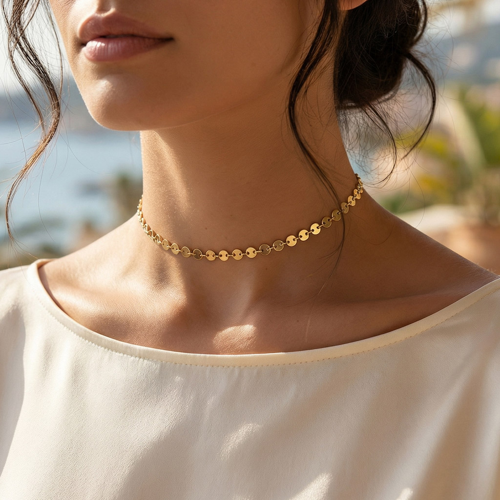 AURA je jemný choker náhrdelník z chirurgickej ocele, ktorý pôsobí elegantne, moderne a nadčasovo. Minimalistický dizajn s drobnými lesklými diskami krásne zvýrazní krk a dodá každému outfitu jemný ženský detail.
