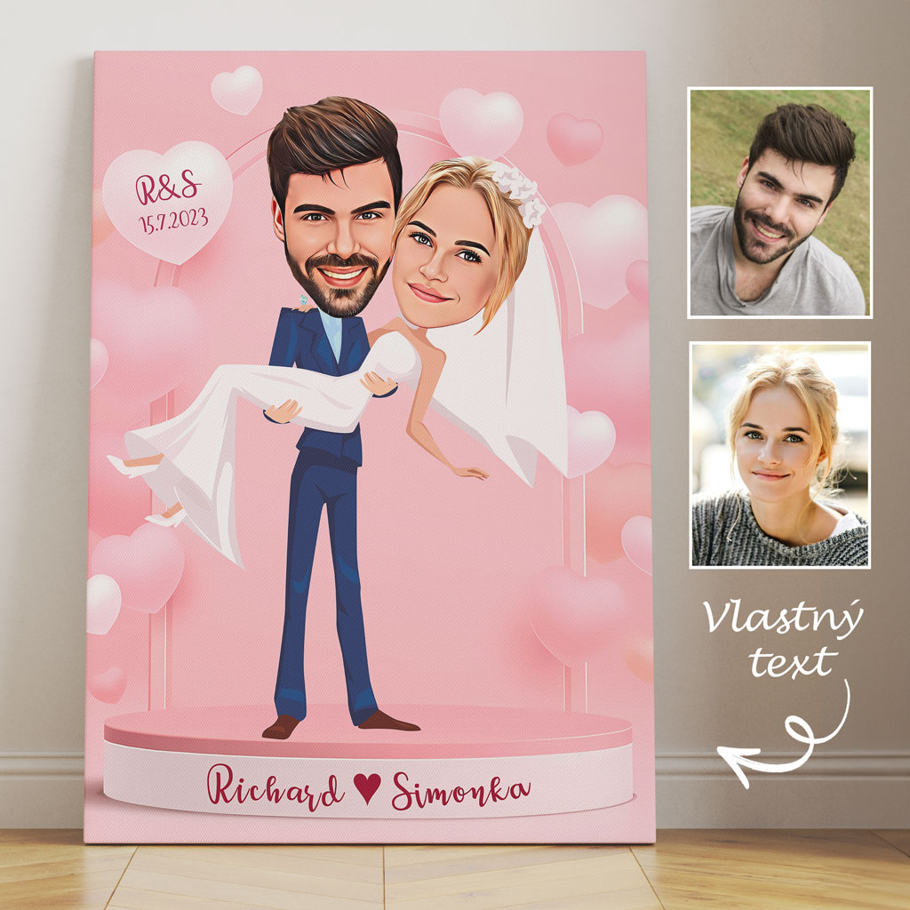 Originálny darček s vlastnými portrétmi v podobe výnimočného obrazu na plátne bude krásnou spomienkou na Deň, keď ste si povedali „Áno“ ♥ Vaše fotografie premeníme na jedinečný umelecký kúsok, ktorý bude ozdobou každého interiéru. Na obraz si tiež môžete pridať vlastný text napr. dátum, mená, iniciálky, či iný odkaz pre vašu lásku ♥