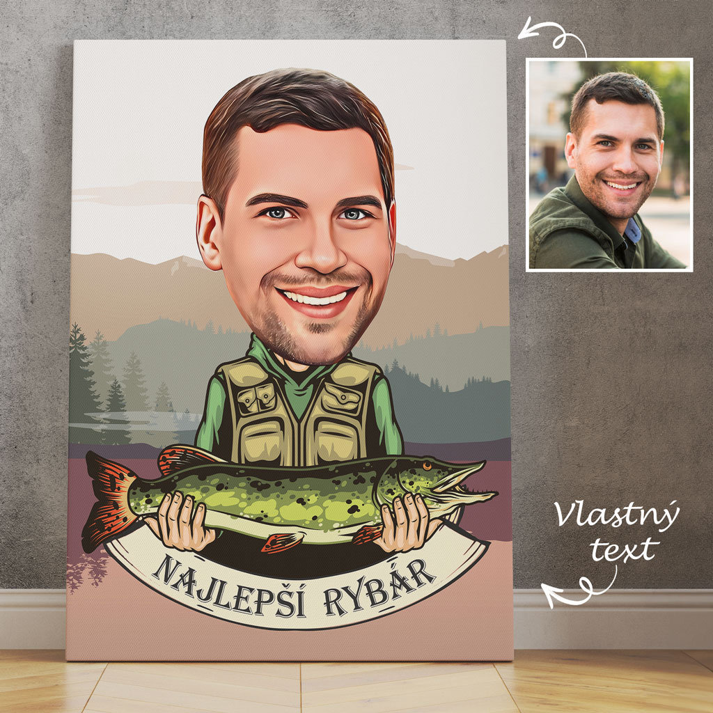 Hľadáte originálny a vtipný darček pre vášnivého rybára? Obraz na plátne s jeho vlastným portrétom a úlovkom bude skvelým darčekom, ktorý nielen prekvapí, ale určite vyčarí aj úsmev na tvári. Na obraz vám tiež pridáme text podľa vášho želania a môžete si vybrať aj druh ryby.