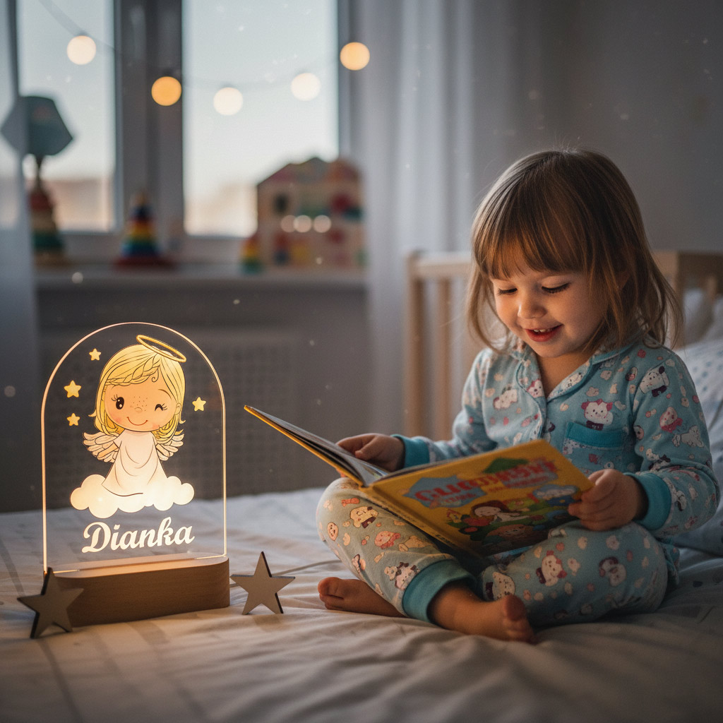 LED nočná lampa s vlastným menom dieťatka a motívom anjelky rozžiari nielen detskú izbičku, ale aj očká detí. Je to tiež ideálny darček k narodeniu dieťatka, na krstiny, narodeniny, či meniny.