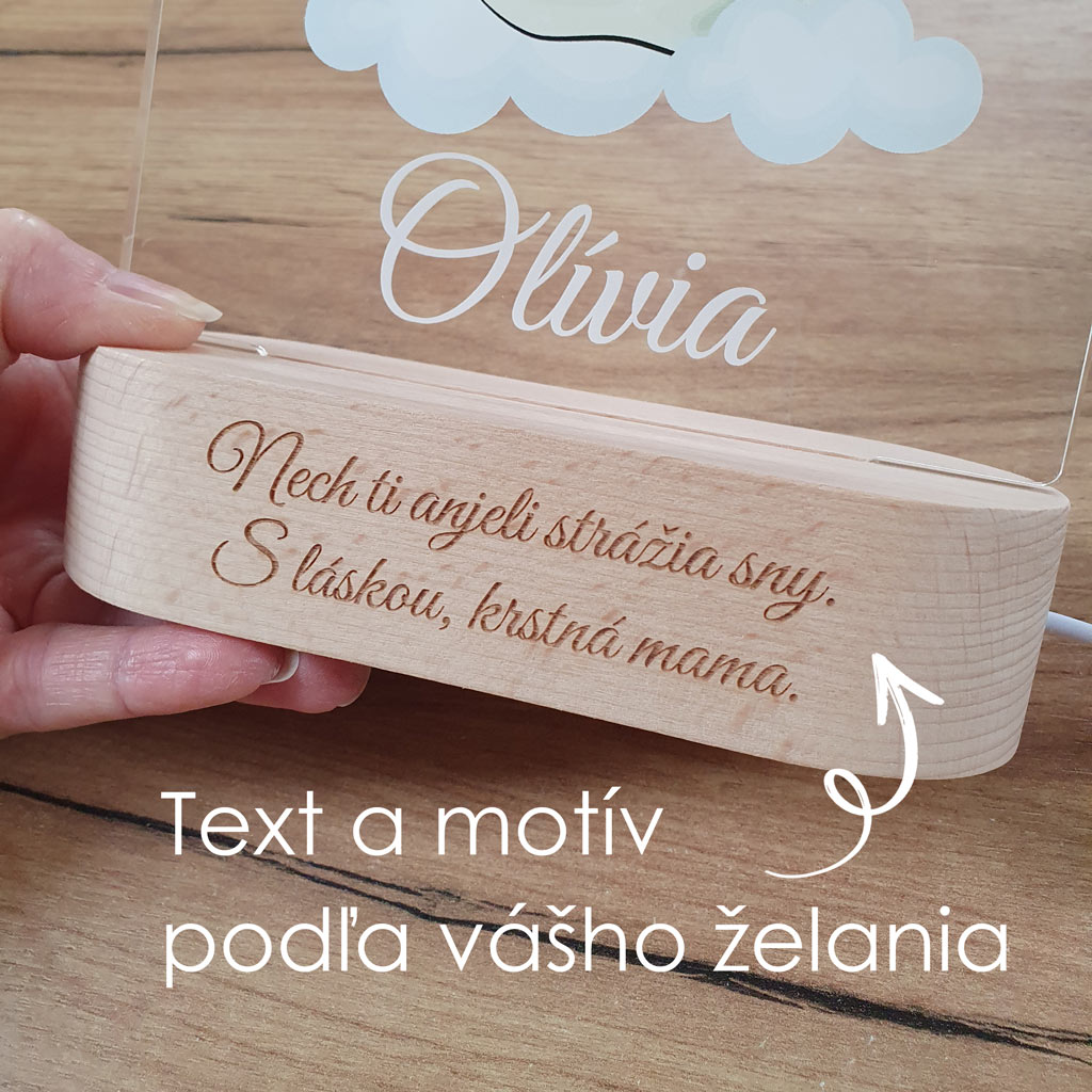 LED nočná lampa s vlastným menom dieťatka a motívom anjelky rozžiari nielen detskú izbičku, ale aj očká detí. Je to tiež ideálny darček k narodeniu dieťatka, na krstiny, narodeniny, či meniny.