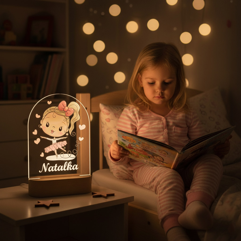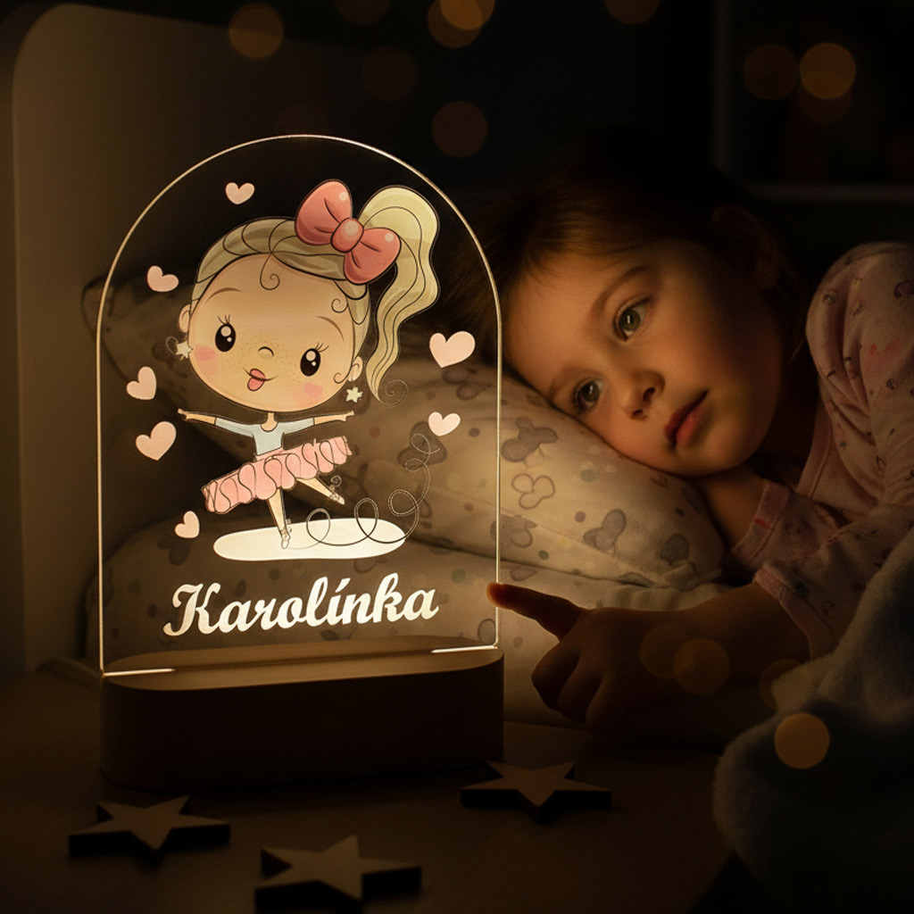 LED nočná lampa s vlastným menom dieťatka a motívom baletky rozžiari nielen detskú izbičku, ale aj očká detí. Je to tiež ideálny darček k narodeniu dieťatka, na krstiny, narodeniny, či meniny.