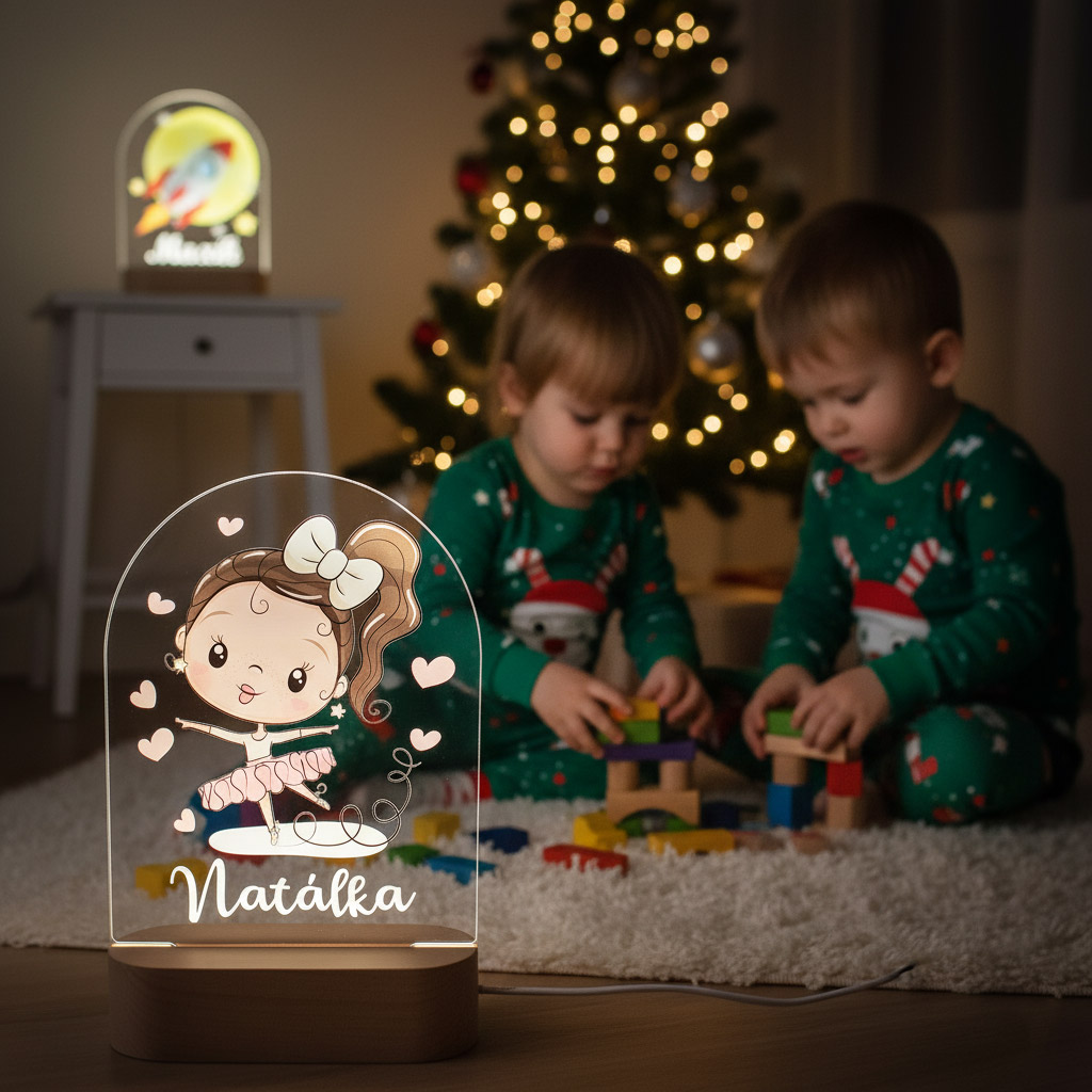 LED nočná lampa s vlastným menom dieťatka a motívom baletky rozžiari nielen detskú izbičku, ale aj očká detí. Je to tiež ideálny darček k narodeniu dieťatka, na krstiny, narodeniny, či meniny.