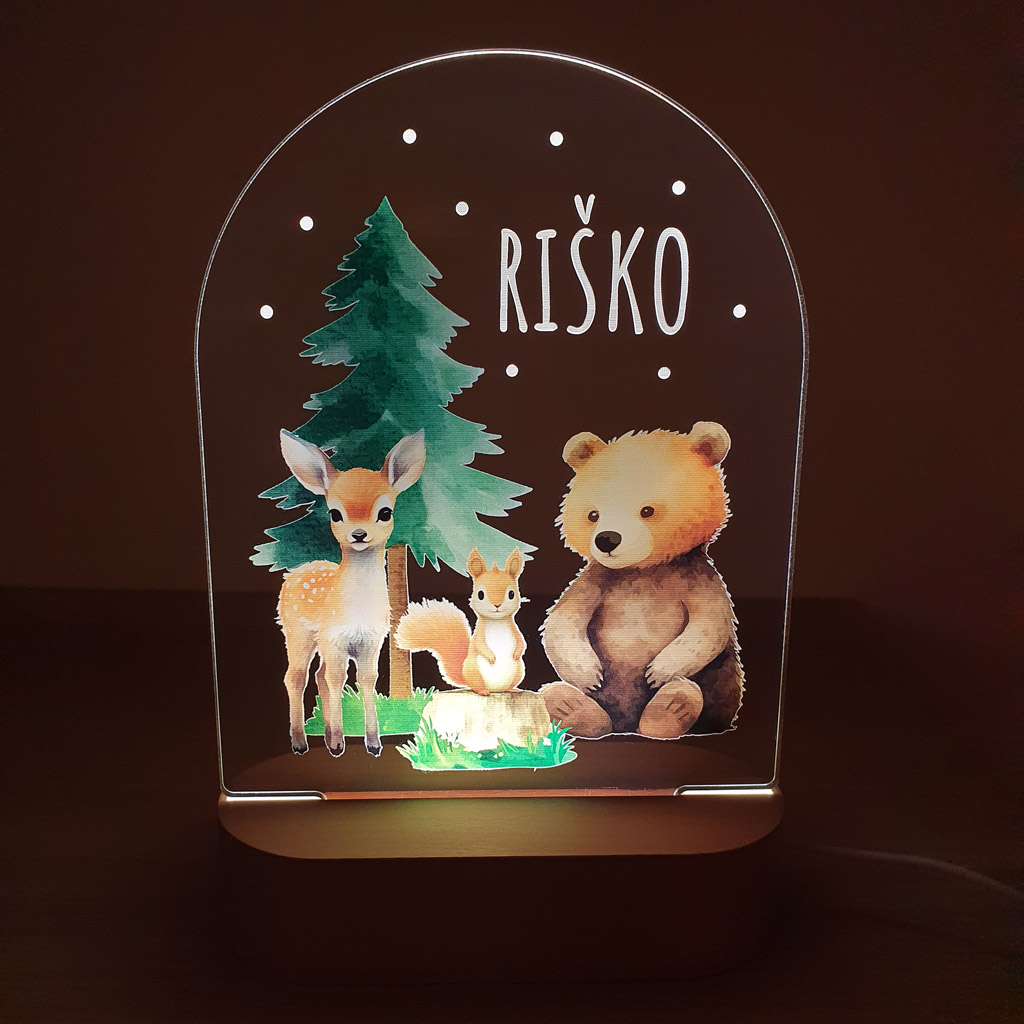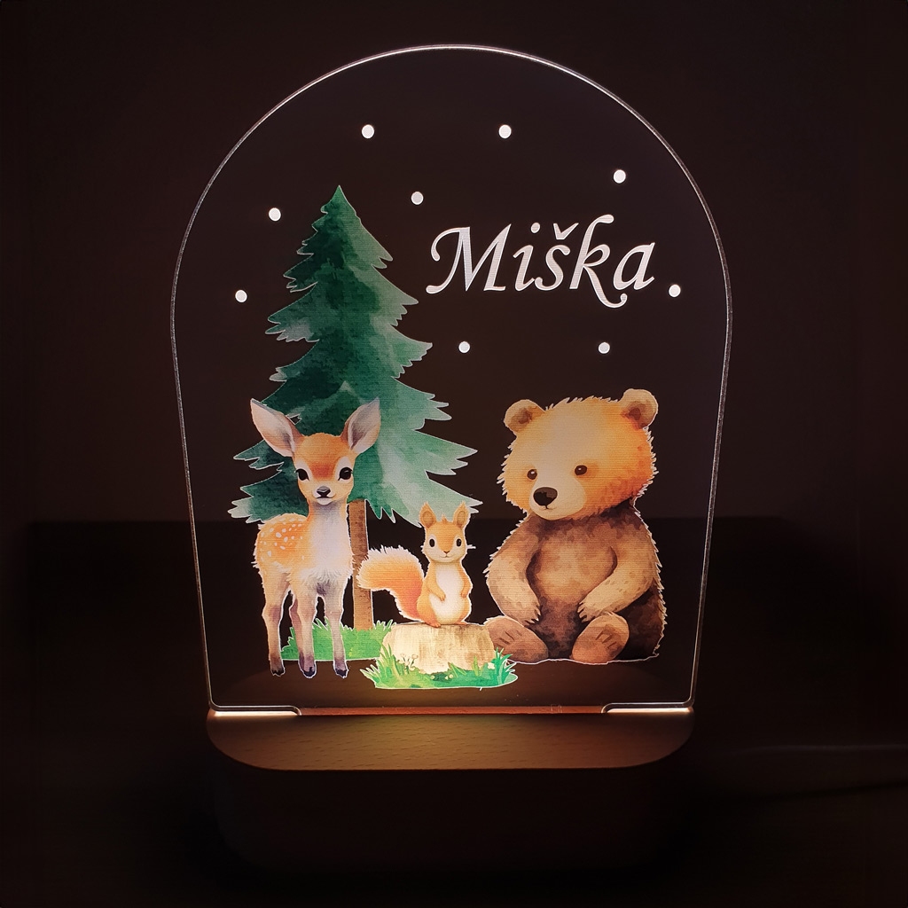 LED nočná lampa s vlastným menom dieťatka a motívom lesných zvieratiek rozžiari nielen detskú izbičku, ale aj očká detí. Je to tiež ideálny darček k narodeniu dieťatka, na krstiny, narodeniny, či meniny.