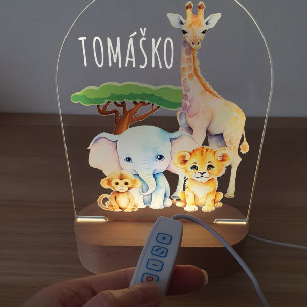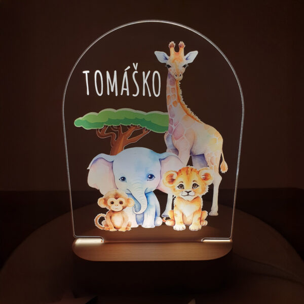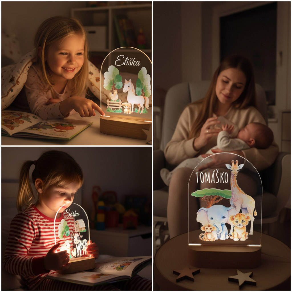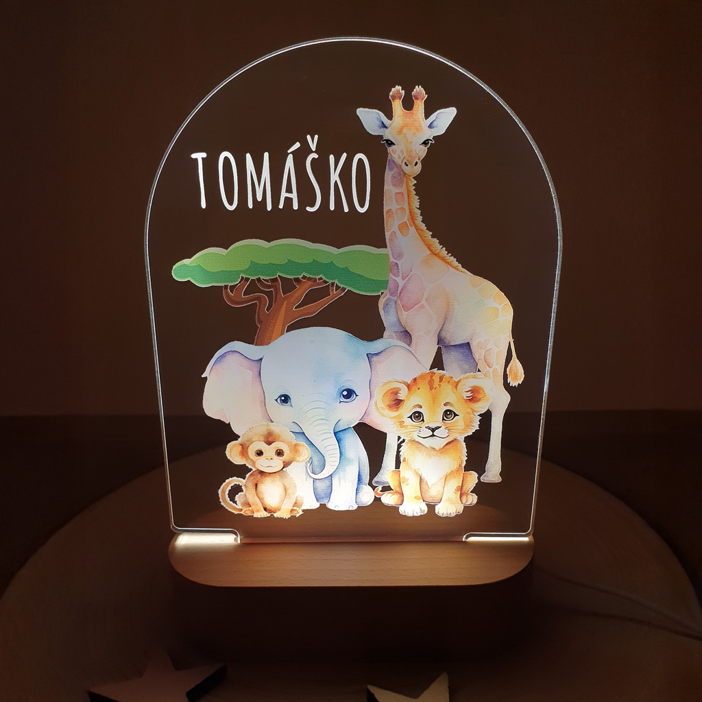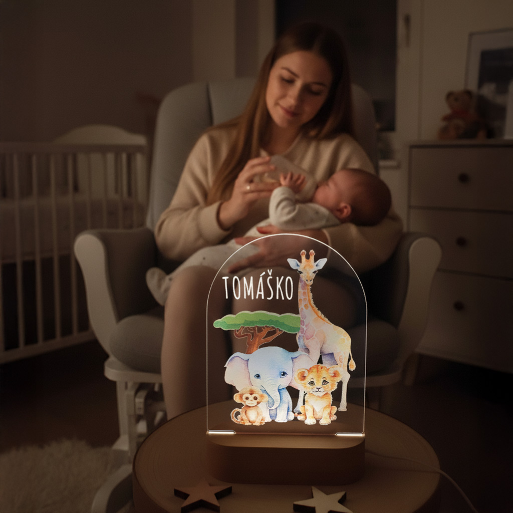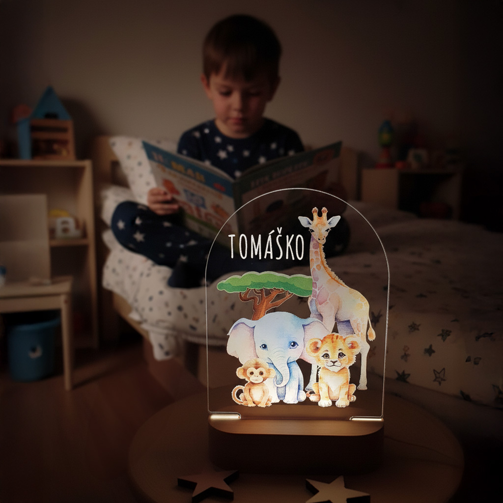 Detská nočná lampa s vlastným menom „Safari zvieratká“