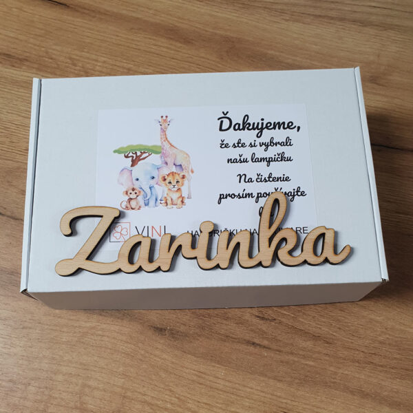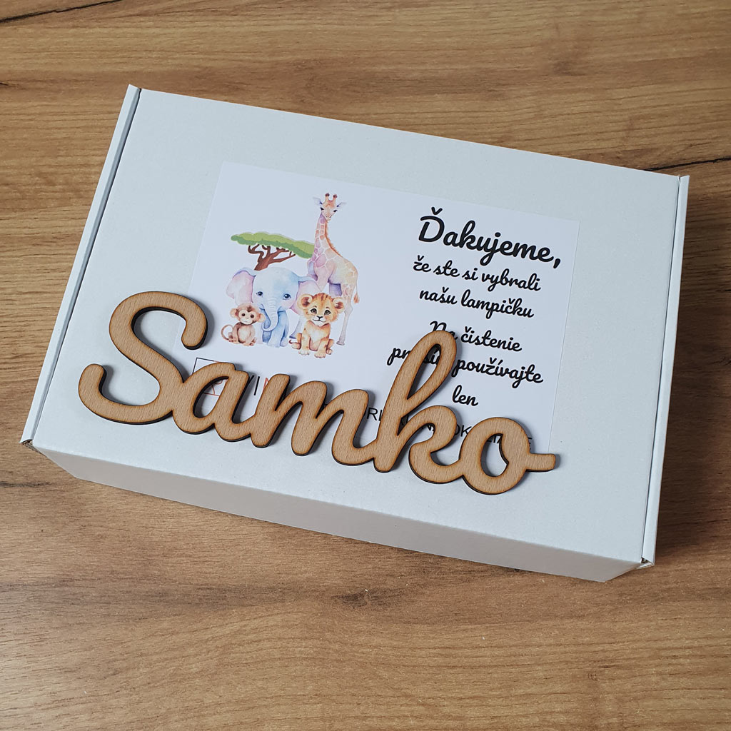LED nočná lampa s vlastným menom dieťatka a motívom safari zvieratiek rozžiari nielen detskú izbičku, ale aj očká detí. Je to tiež ideálny darček k narodeniu dieťatka, na krstiny, narodeniny, či meniny.