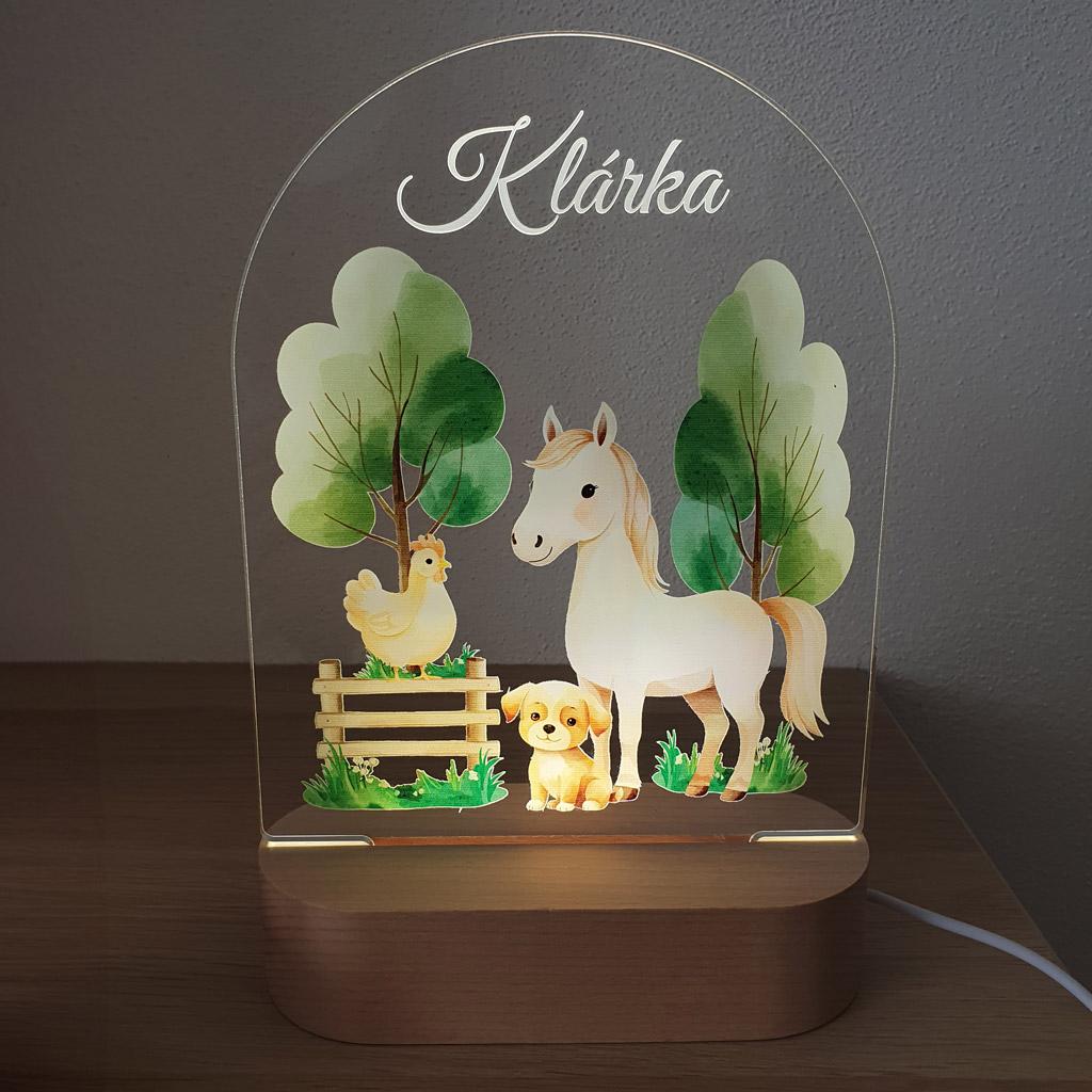 LED nočná lampa s vlastným menom dieťatka a motívom zvieratiek na ranči rozžiari nielen detskú izbičku, ale aj očká detí. Je to tiež ideálny darček k narodeniu dieťatka, na krstiny, narodeniny, či meniny.