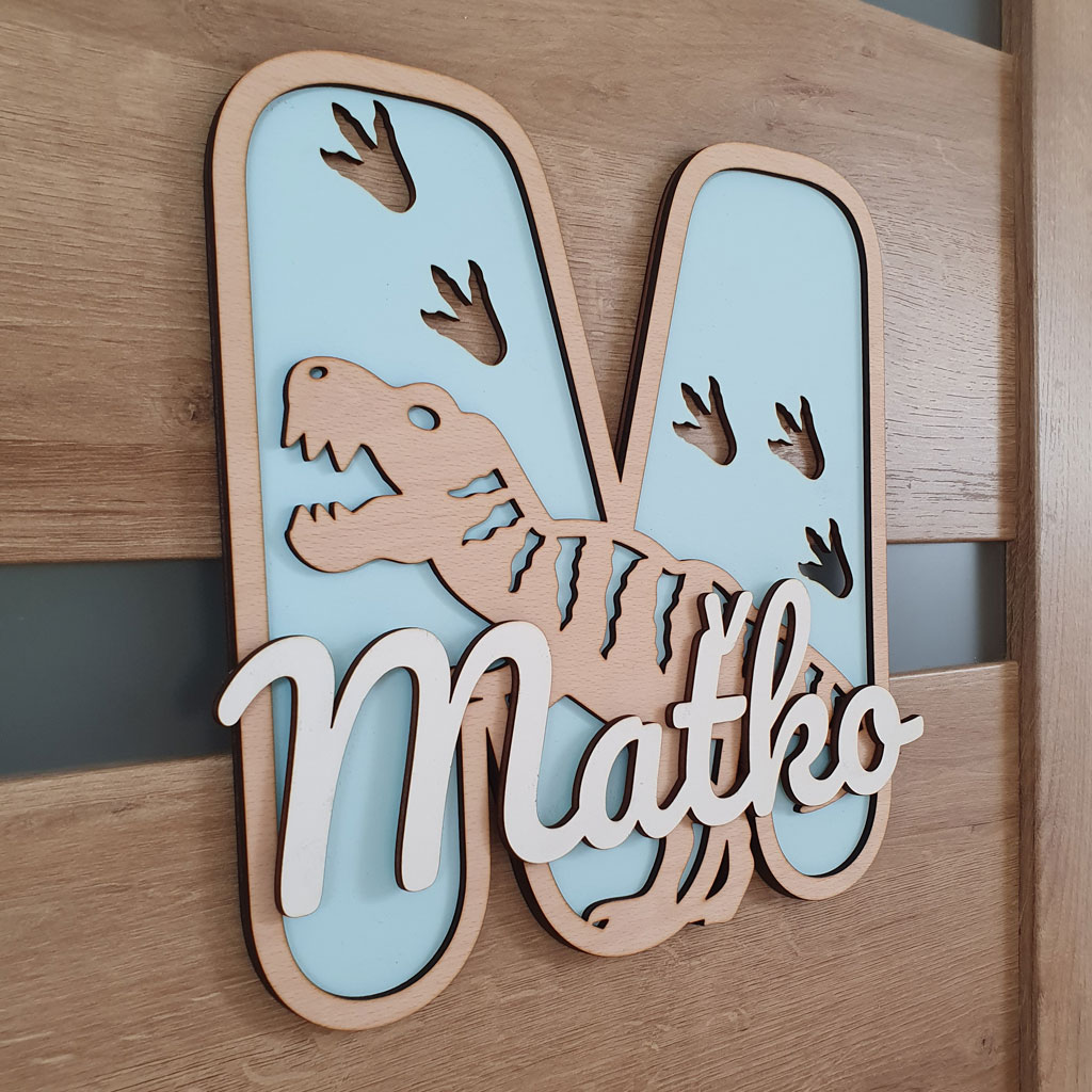 Drevená 3D iniciálka dinosaura s vlastným menom ozdobí každé dvere či interiér detskej izby. Môžete ju tiež pripevniť na stenu alebo môže zdobiť poličku a stane sa tak obľúbeným doplnkom, ktorý skrášli a zútulní každú chlapčenskú izbu. Vďaka širokému výberu farebných kombinácii ju ľahko zladíte k farbe steny a k nábytku v detskej izbe. Je to ideálny darček pre chlapca k narodeninám, meninám, ktorý určite urobí radosť a poteší každého malého aj veľkého milovníka dinosaurov.