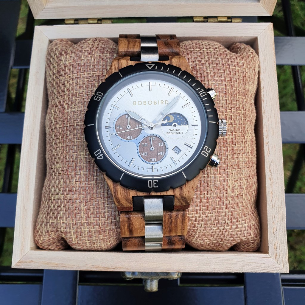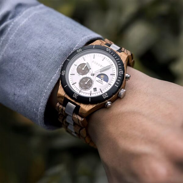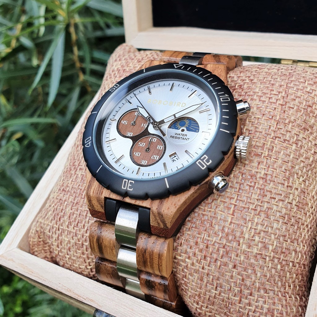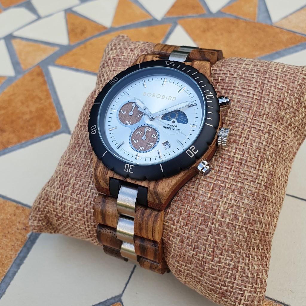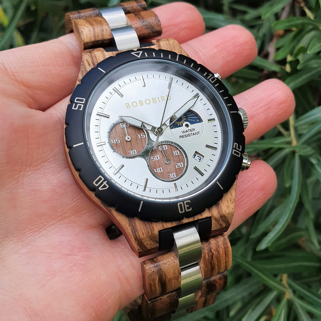 sa vďaka svojmu výraznému a nadčasovému dizajnu stanú obľúbeným pánskym doplnkom, ktorý doladí k dokonalosti každý elegantný aj športový outfit. Hodinky sú vyrobené zo zebrového dreva a kombinácie vysokokvalitnej nerezovej ocele. Hodinky disponujú praktickými funkciami zobrazovania dátumu, grafickým zobrazením dňa a noci a chronografom (stopky).