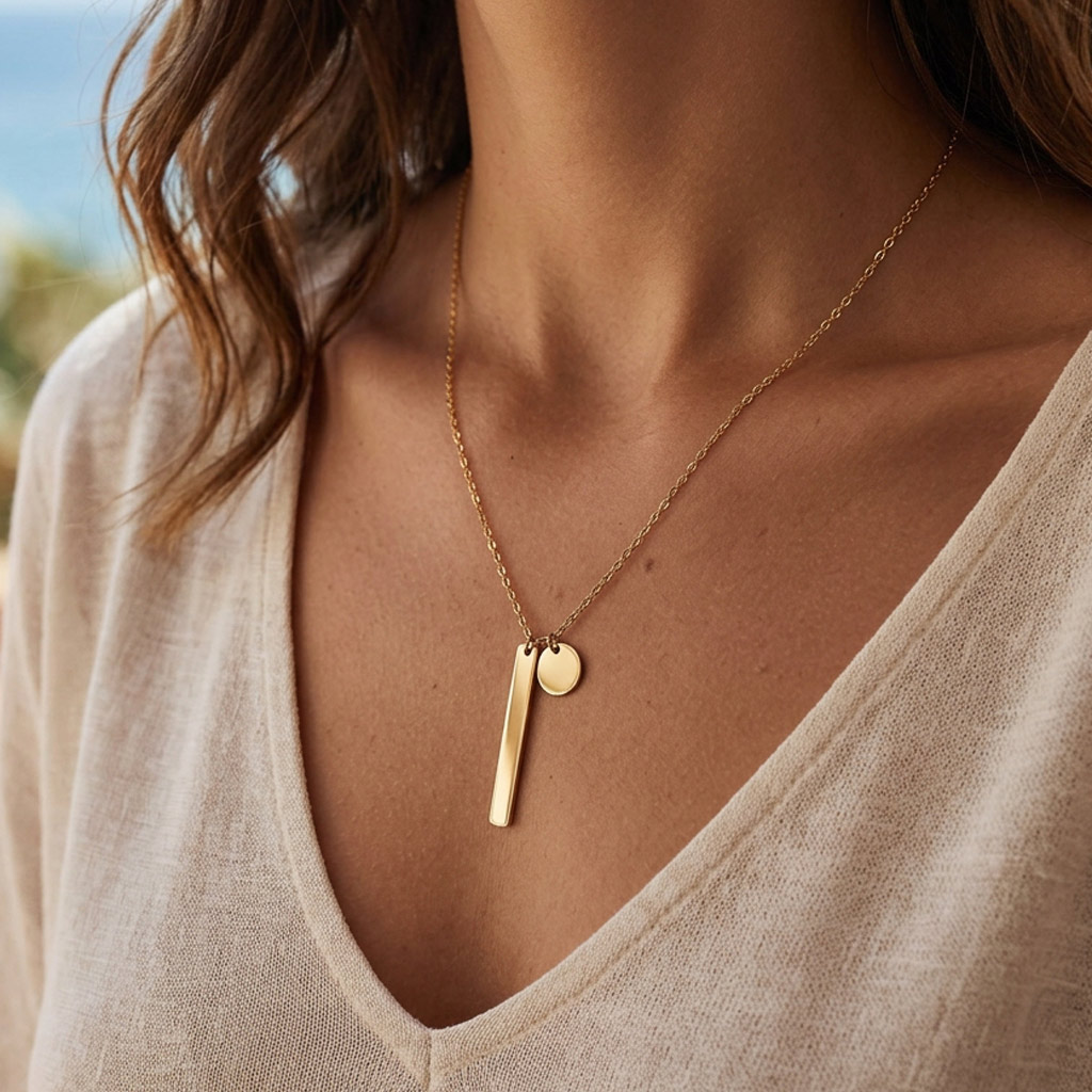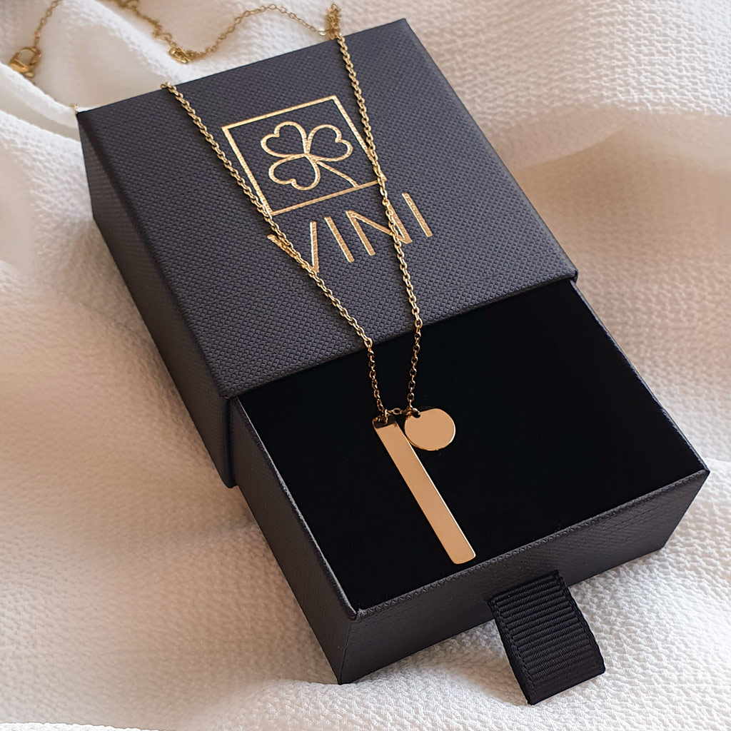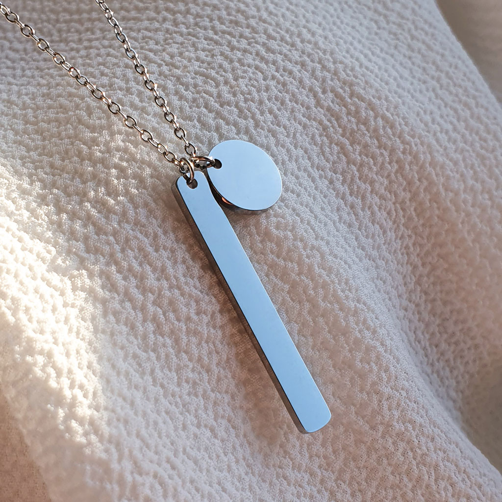 Náhrdelník BOND je nadčasový šperk z chirurgickej ocele s dvojitým príveskom – v tvare predĺženej platničky a medailónikom, na ktoré si môžete nechať vygravírovať meno, dátum, iniciály, symbol alebo krátky odkaz s osobným významom.