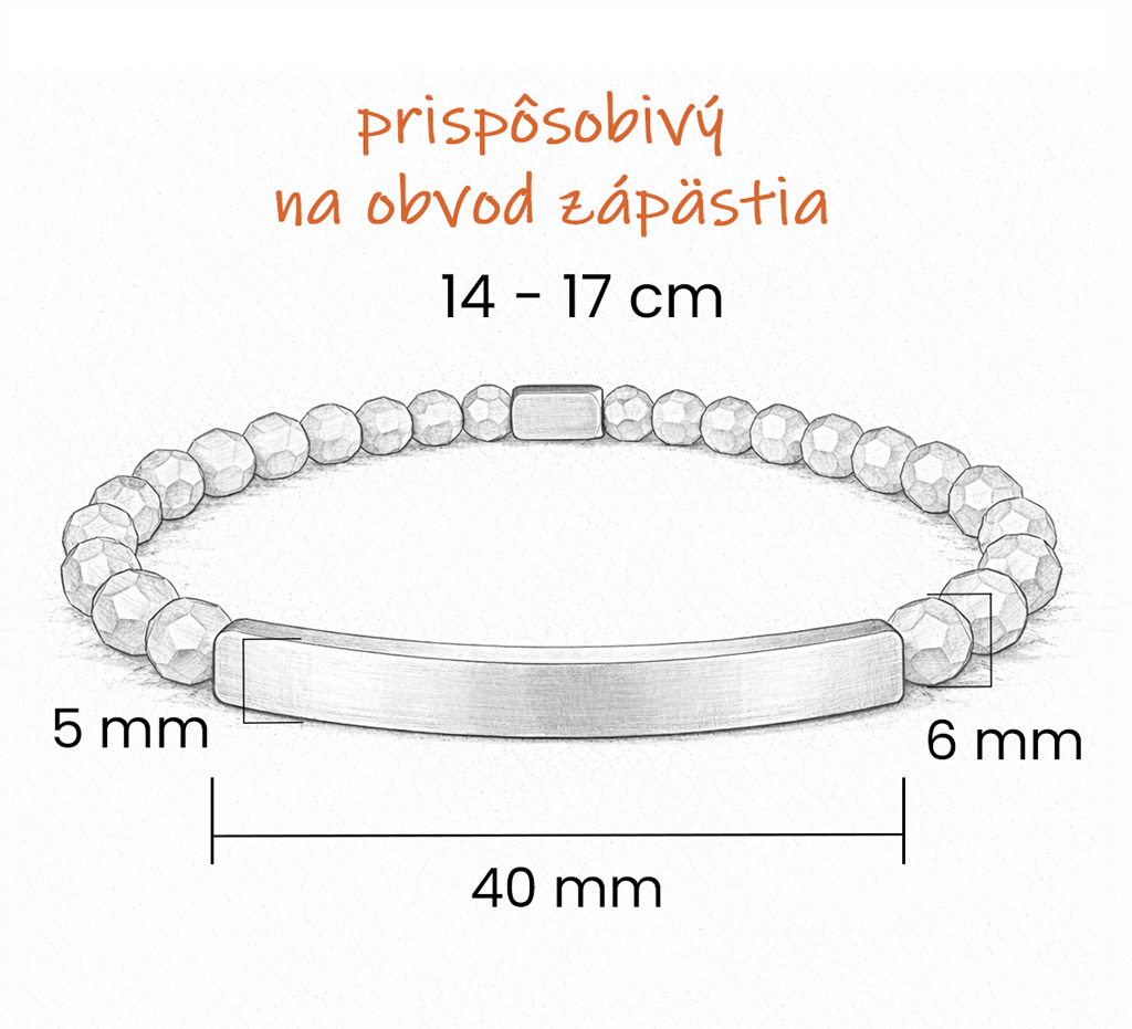 - Veľkosť náramku: prispôsobivá – pre obvod zápästia 14 – 17 cm