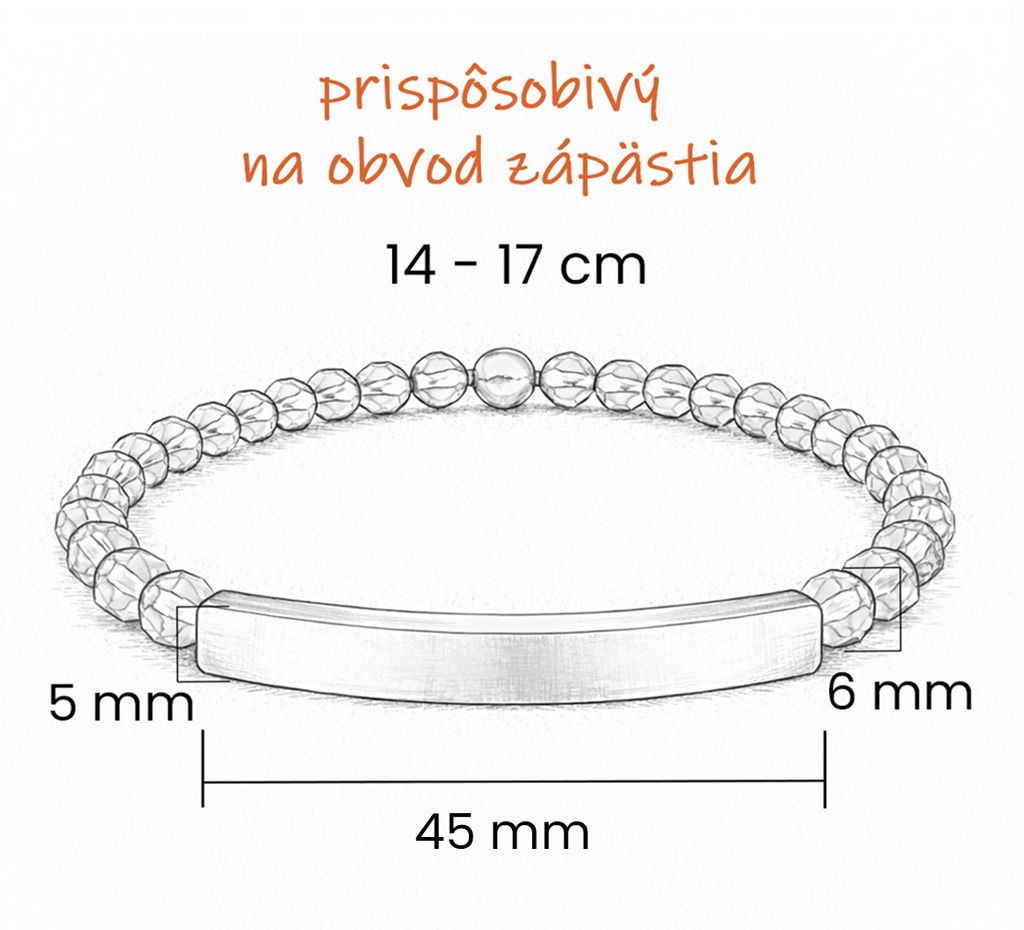 - Veľkosť náramku: prispôsobivá – pre obvod zápästia 14 – 17 cm