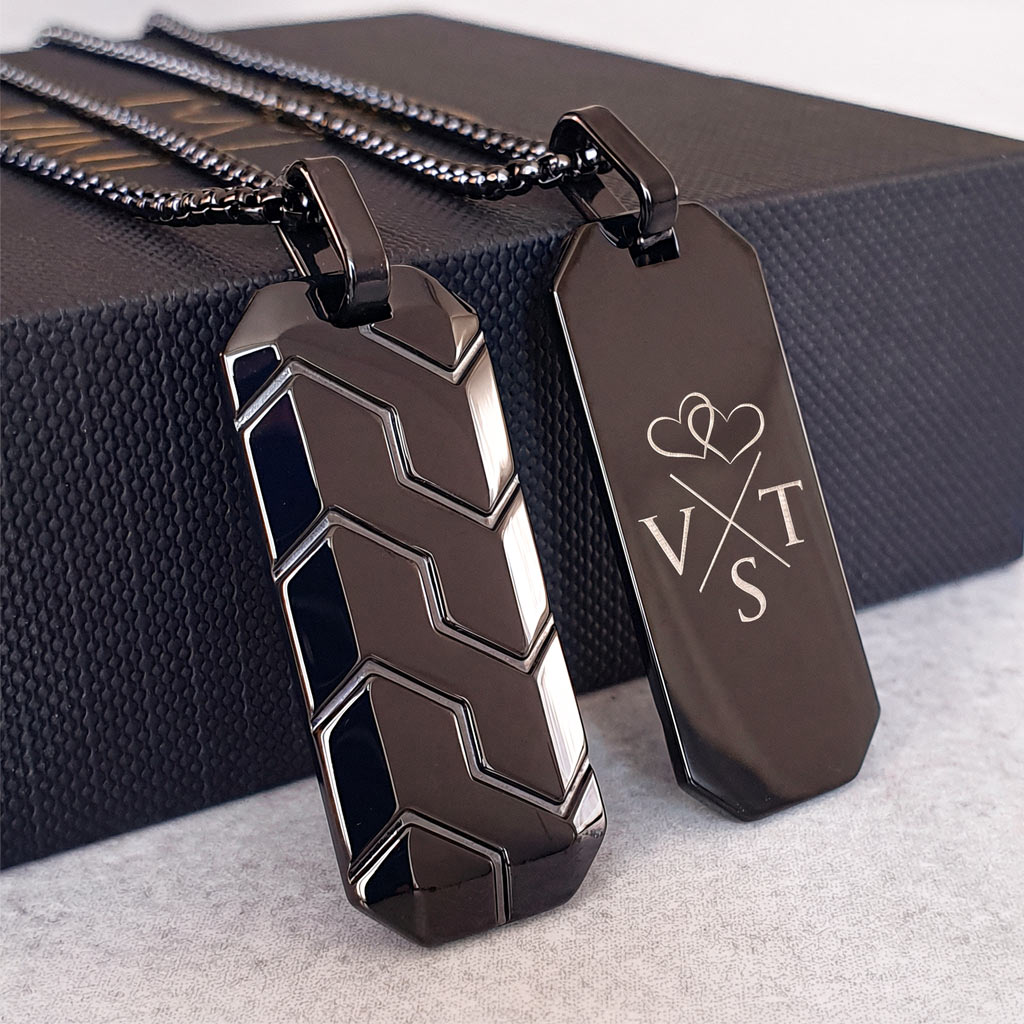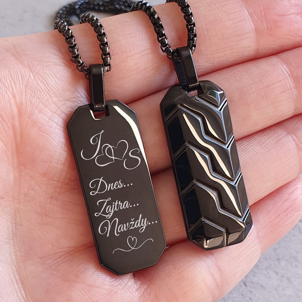 ELEMENT Black je elegantný pánsky náhrdelník z chirurgickej ocele v čiernom prevedení s možnosťou gravírovania vlastného textu, mena, dátumu alebo symbolu. Jeho moderný geometrický reliéfny vzor v kombinácii s tmavým prevedením vytvára výrazný a sebavedomý vzhľad.