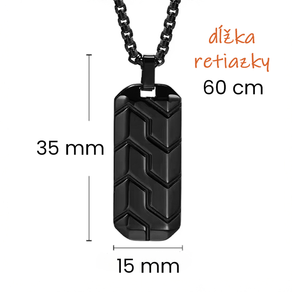 - prívesok je upravený odolnou čiernou IP povrchovou úpravou v lesklom prevedení a zdobený moderným geometrickým reliéfnym vzorom, ktorý dodáva šperku výrazný a nadčasový charakter