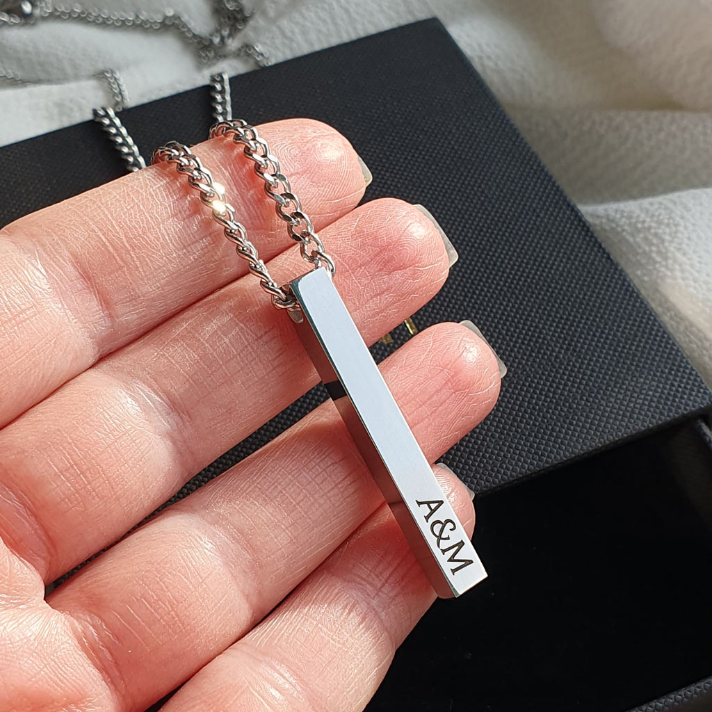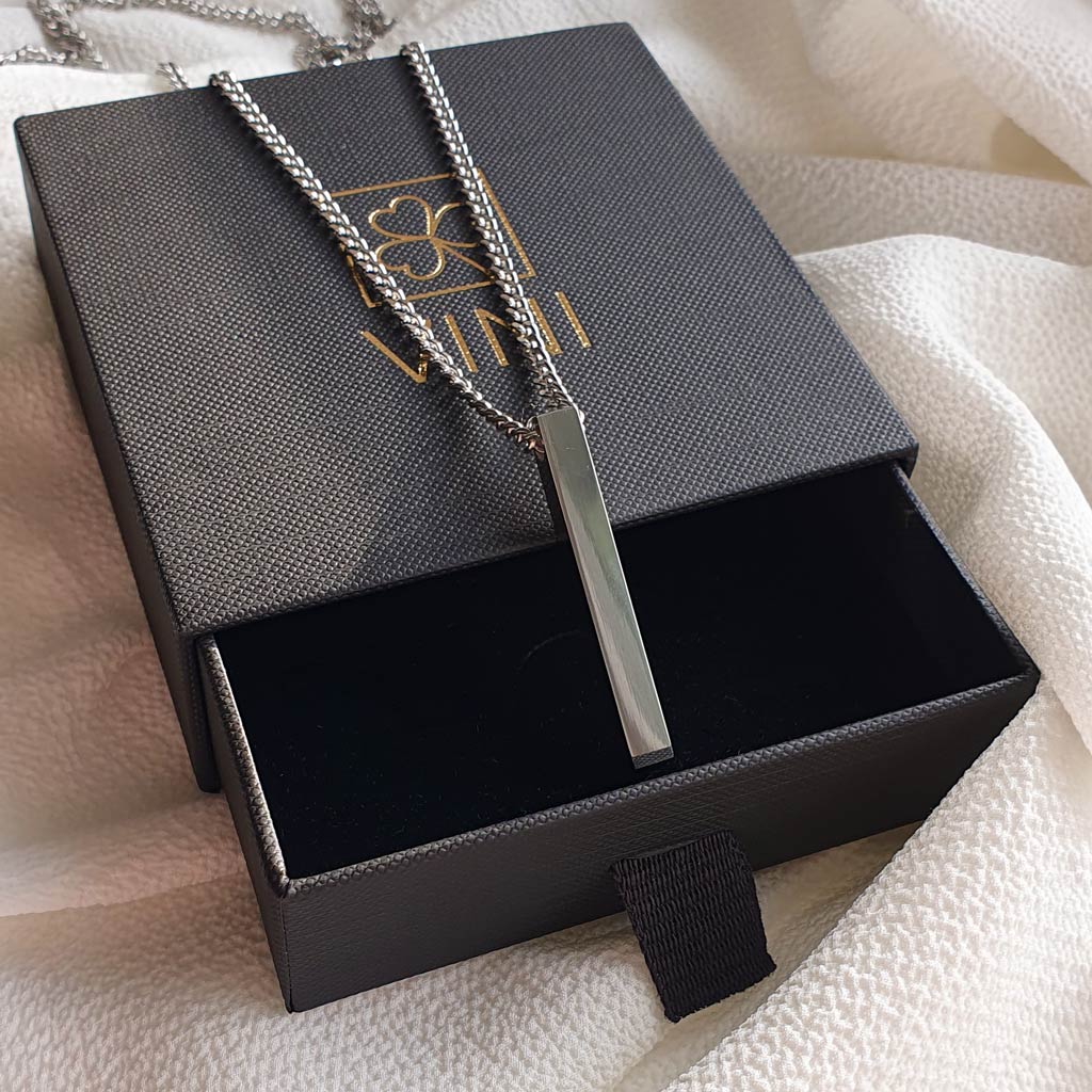 VERTIGO je moderný pánsky náhrdelník z chirurgickej ocele s možnosťou gravírovania až na 4 strany prívesku. Minimalistický hranatý tvar pôsobí elegantne a nadčasovo, vďaka čomu je ideálny ako osobný darček pre muža. Prívesok umožňuje gravírovanie mena, dátumu, iniciálov, krátkeho odkazu alebo symbolu – každú stranu môžete využiť podľa vlastného želania.