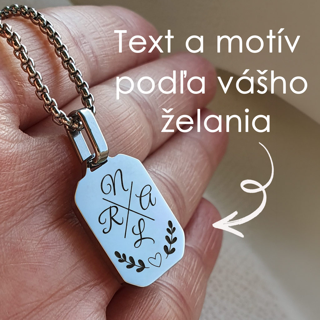 - gravírovanie na mieru na zadnú stranu prívesku – môžete si zvoliť vlastný text, symbol, iniciály alebo dátum, ktorý pre vás niečo znamená