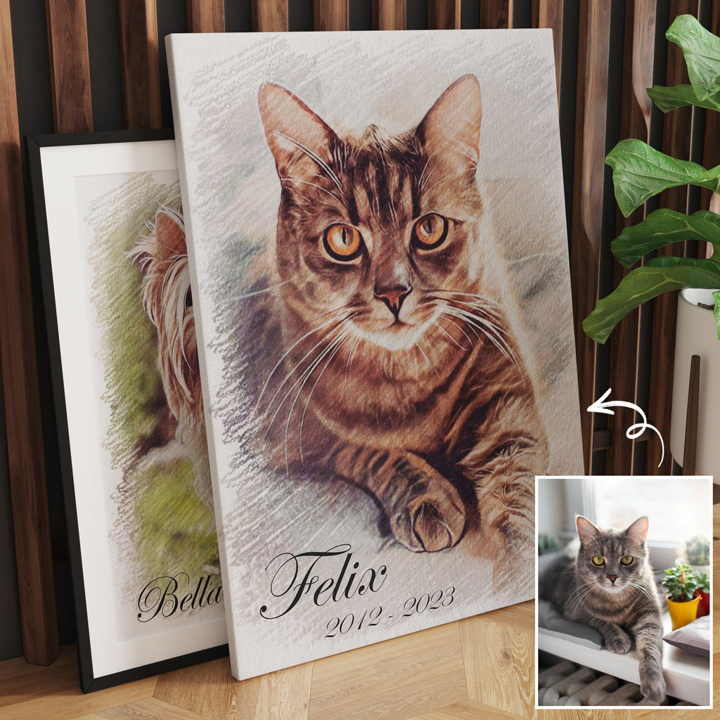 Zútulnite si domov alebo potešte seba, či svojich blízkych jedinečným obrazom na plátne z fotografie vášho psíka, či iného domáceho miláčika. Grafické spracovanie v umeleckom štýle pastel art bude krásnou a nezabudnuteľnou spomienkou. Na obraz si tiež môžete pridať vlastný text napr. meno vášho psíka, mačičky, dátum, či iný text, ktorý vám na obraz pridáme a umiestnime zadarmo podľa vášho želania. Naše fotoobrazy na plátno sú skvelým darčekom, ktorý zútulní každý domov.