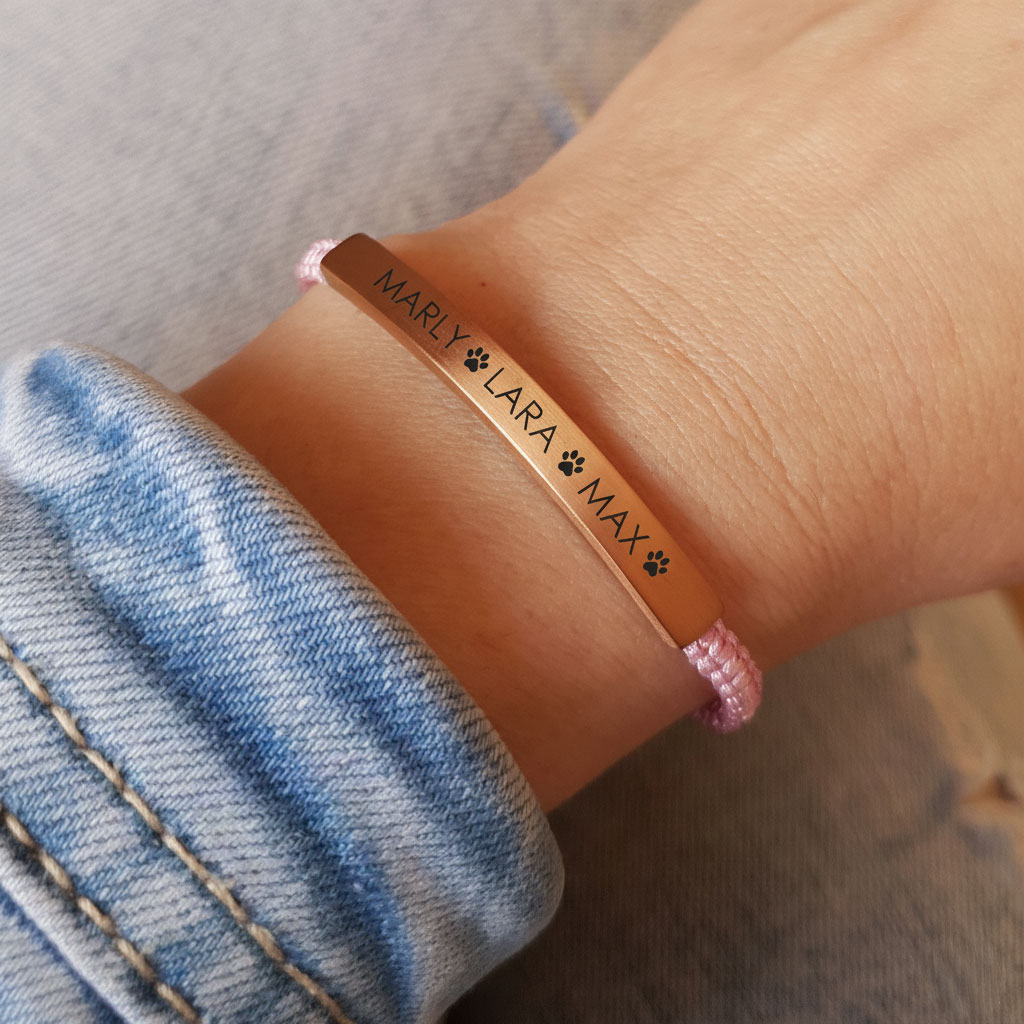 Elegantný personalizovaný náramok so šnúrkou z kvalitnej chirurgickej ocele s možnosťou gravírovania vlastného textu, mena, dátumu alebo symbolu. Ideálny darček s osobným významom – pre ňu.