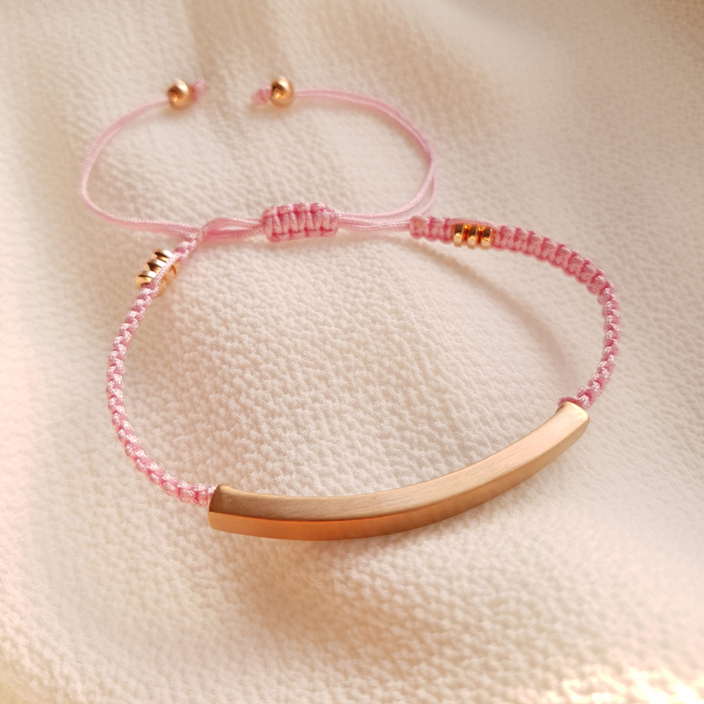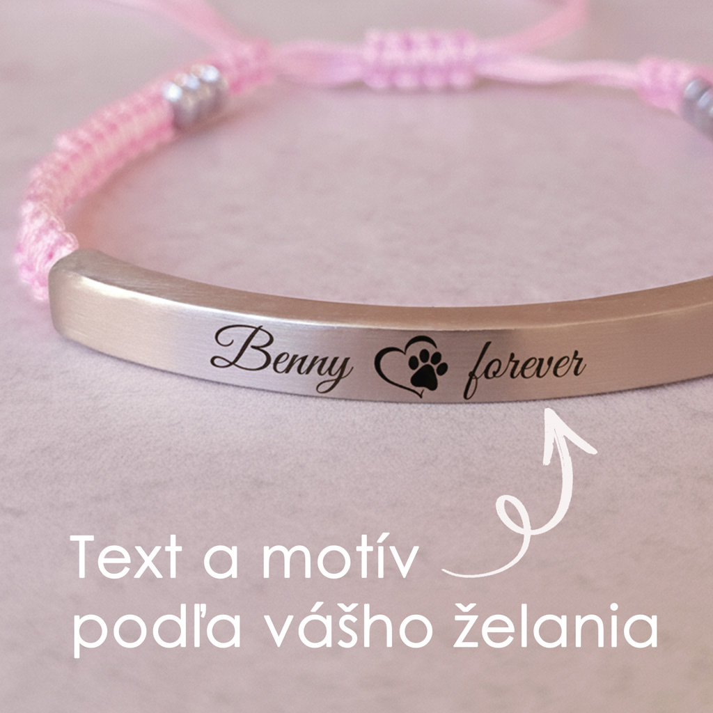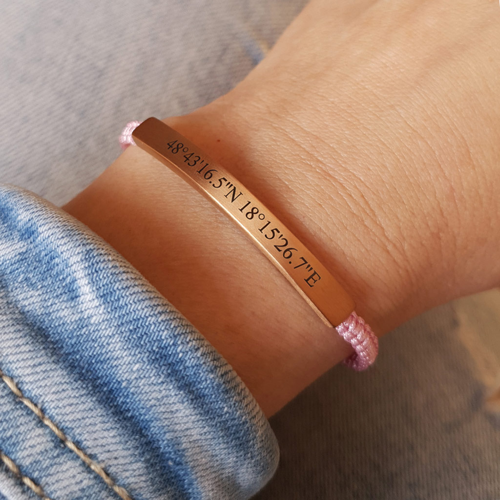 Elegantný personalizovaný náramok so šnúrkou z kvalitnej chirurgickej ocele s možnosťou gravírovania vlastného textu, mena, dátumu alebo symbolu. Ideálny darček s osobným významom – pre ňu.