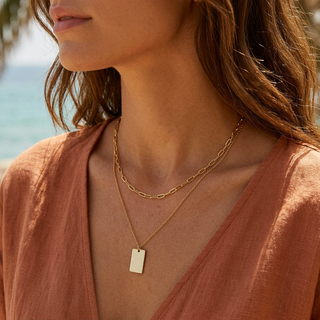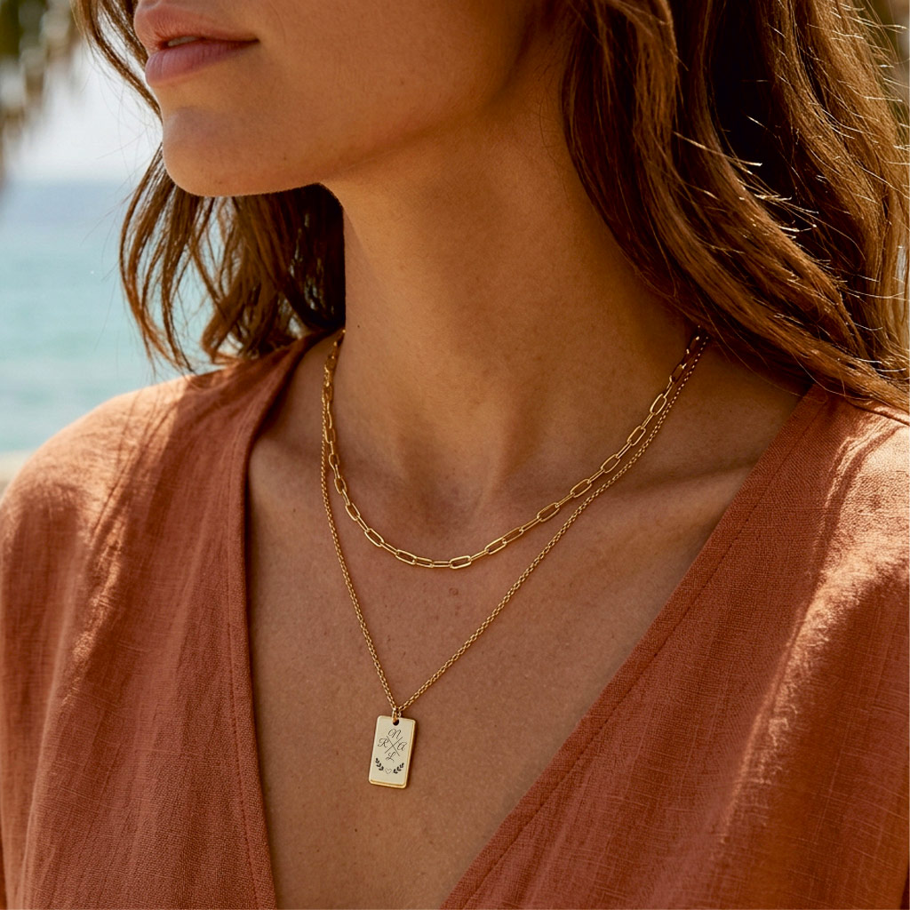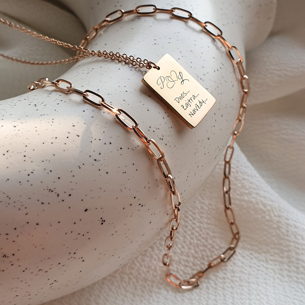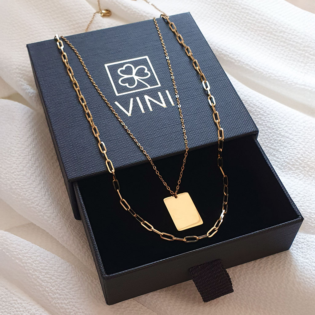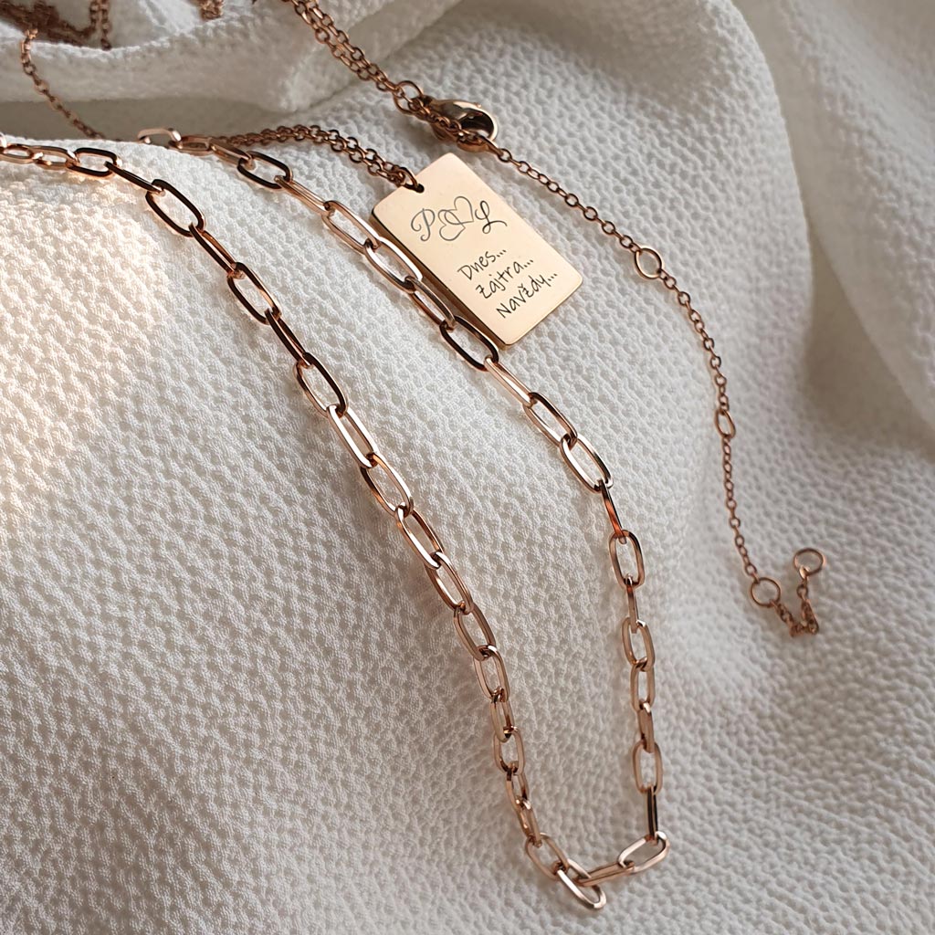 Set GLORY je moderný vrstvený set náhrdelníkov z chirurgickej ocele s personalizovaným príveskom s gravírovaním, na ktorý si môžete pridať meno, dátum, iniciály alebo krátky odkaz s osobným významom.