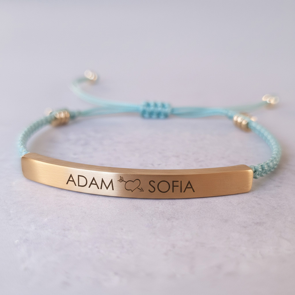 Elegantný personalizovaný náramok so šnúrkou z kvalitnej chirurgickej ocele s možnosťou gravírovania vlastného textu, mena, dátumu alebo symbolu. Ideálny darček s osobným významom – pre ňu aj pre neho.